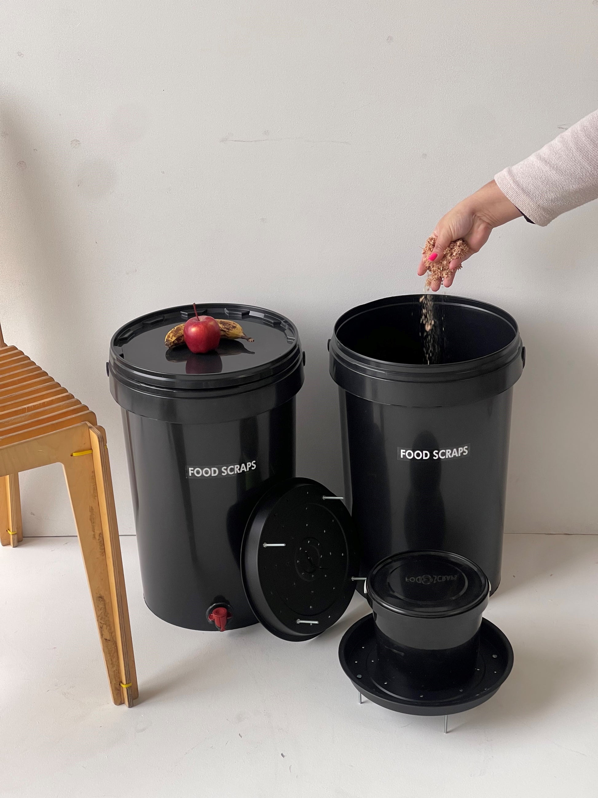 For composting in your kitchen, we recommend having 2 of the Bokashi bins, so when one is full, leave it for 2 weeks to ferment.