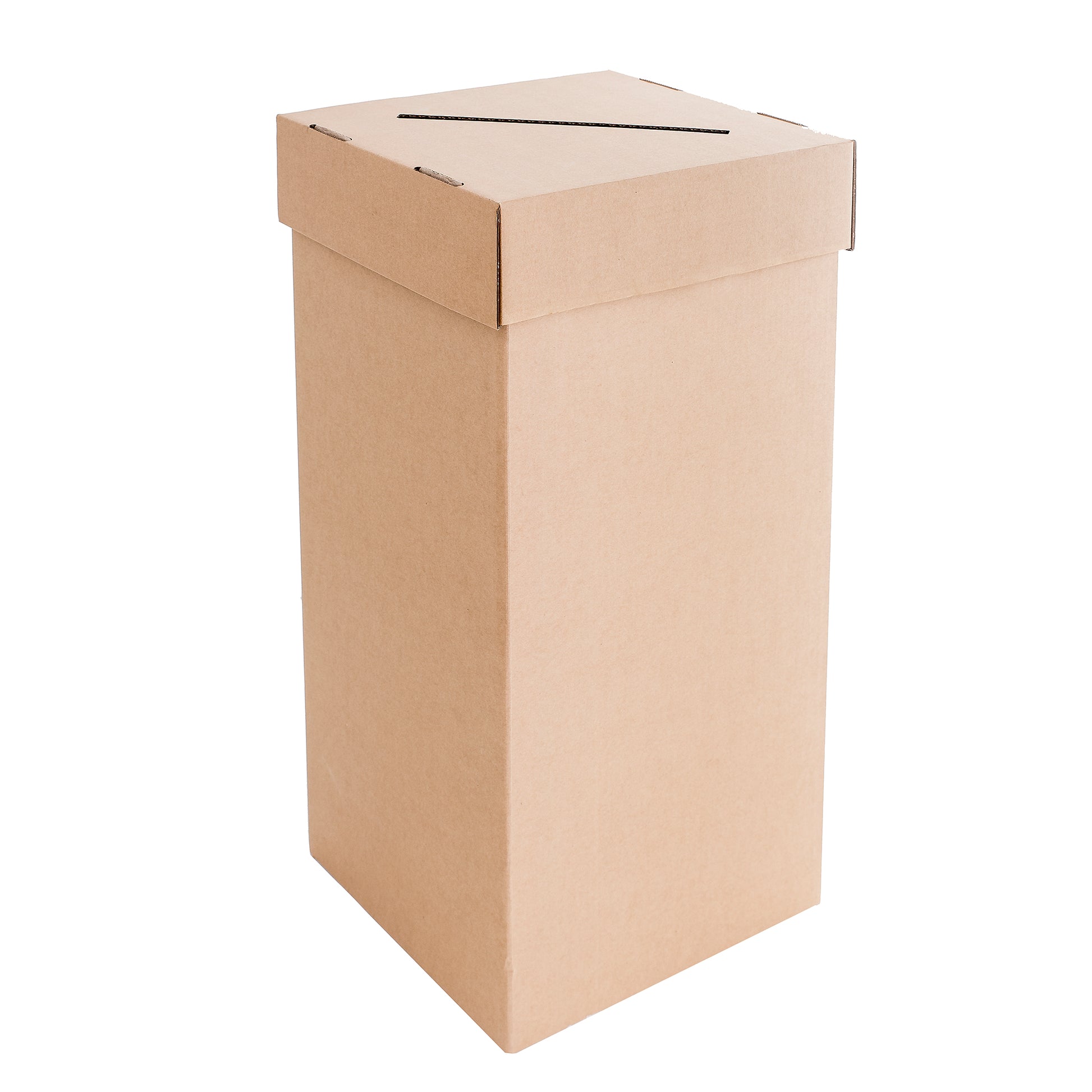 These cardboard bins are unprinted and come with a paper slot on the lid.