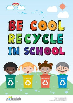 -the School poster ("Be Cool Recycle in School") is aimed at encouraging learners to make use of their recycling bins and separate their waste.