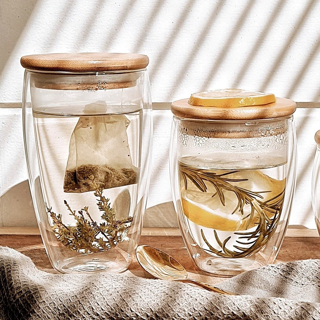These double-walled glasses are environmentally friendly, plastic-free and we think they should be a staple in every kitchen... AND TWO SIZES are available!
