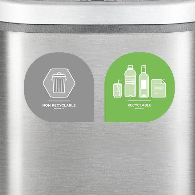 * Set of 2 labels: 1 x Green for Recyclable Dry Waste; 1 x Charcoal for Non Recyclable -where the drops "face each other" like in the image. (Like those seen on the 2-Compt Sesame Bins)
